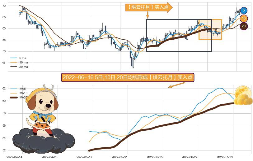 ⚀ 2022-05-16日-2022-07-15日显现 5日-10日-20日均线 【烘云托月】买入点 看多信号,后市看涨,买入