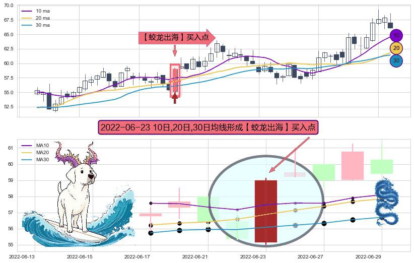 ⚀ 2022-06-23日显现 10日-20日-30日均线 【蛟龙出海】买入点 看多信号,后市看涨,买入