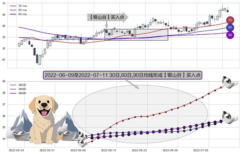 ⚀ 2022-06-10-日至2022-07-11-日显现 30日-60日-90日均线 【银山谷】买入点 看多信号,后市看涨,买入