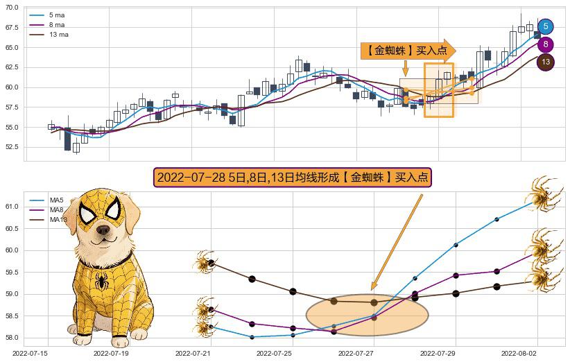 ⚀ 2022-07-28日显现 5日-8日-13日均线 【金蜘蛛】买入点 看多信号,后市看涨,买入
