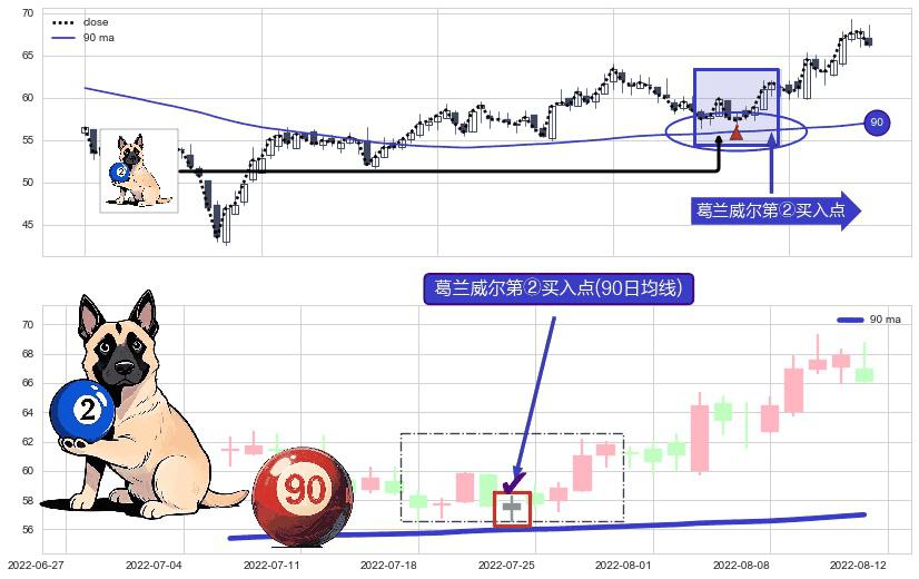 ⚀ 2022-07-22-日显现 葛兰威尔均线 90日均线 第②买入点 上升趋势的中继信号,后市看涨,买进信号