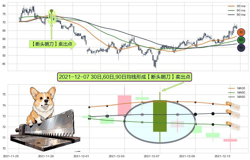 ⚀ 2021-12-07日显现 30日-60日-90日均线 【断头铡刀】卖出点 看空信号,后市看跌,卖出
