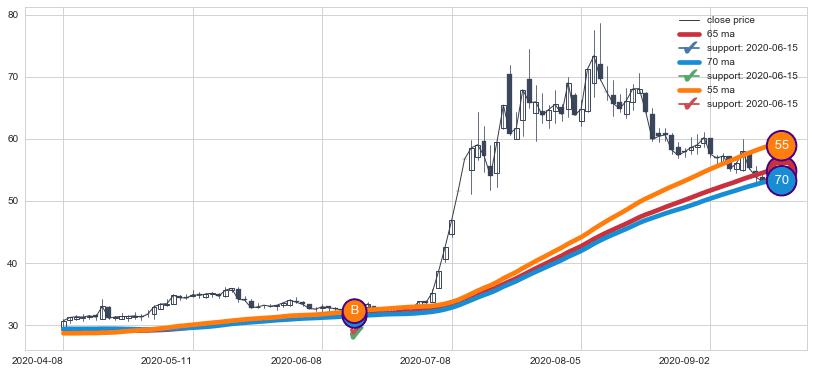 ➢ 发现最优均线组合: 55 , 65 , 70