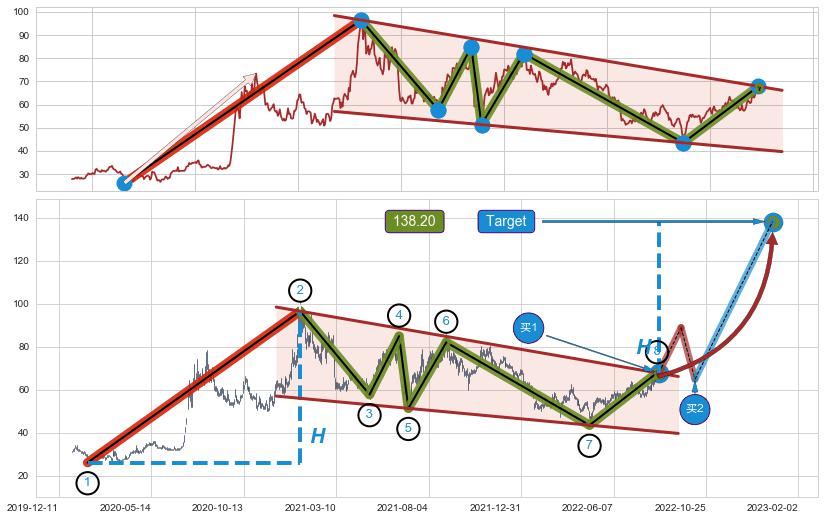 ➣ 最小中继整理涨幅→𝐇: 70.40 (𝐇旗杆的长度:旗杆起点→顶点)