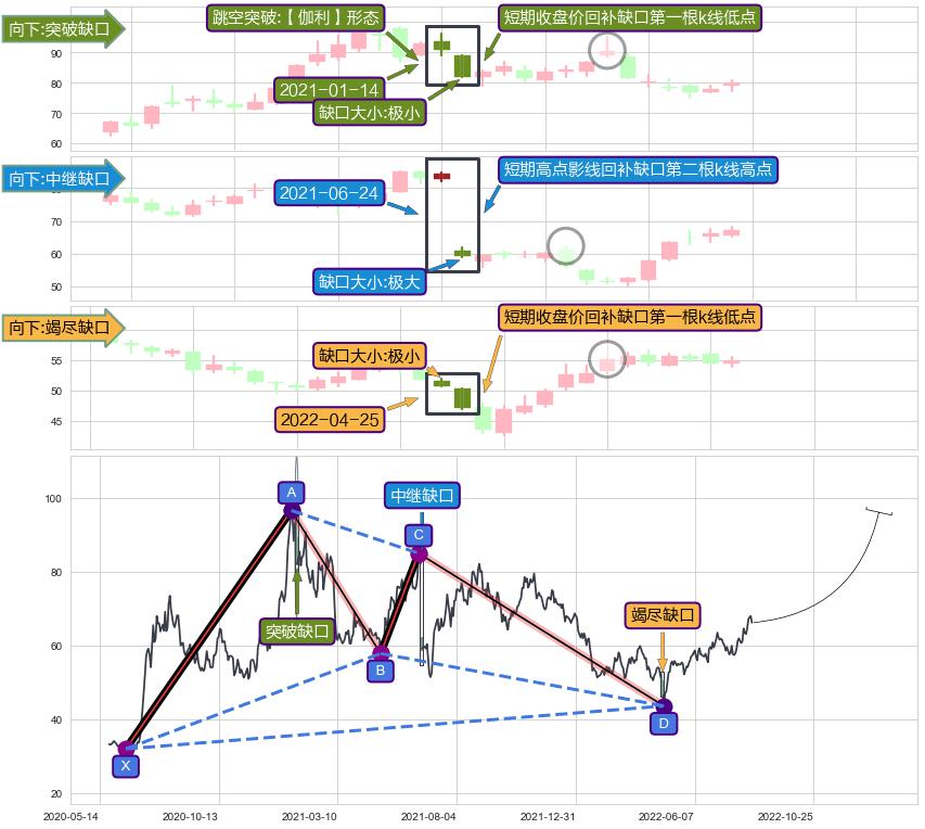 ➢ 2022-04-25形成:向下跳空【竭尽】缺口