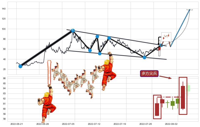 ➣ D点拟合预测价格9.64,距离最后交易收盘价格66.10相差 -85.42%
