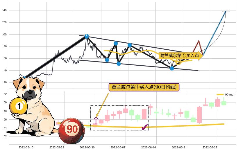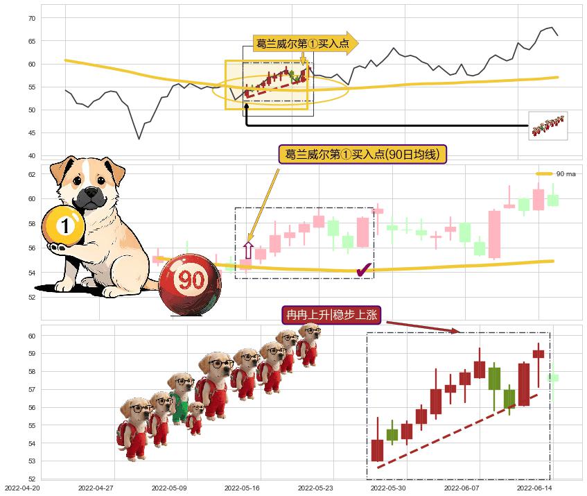 ➢ 收盘价(2022-06-27: 59.00 )→回踩→第一根k线高点(2022-06-23: 59.10 )