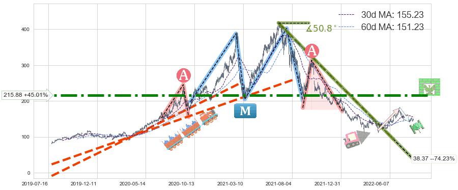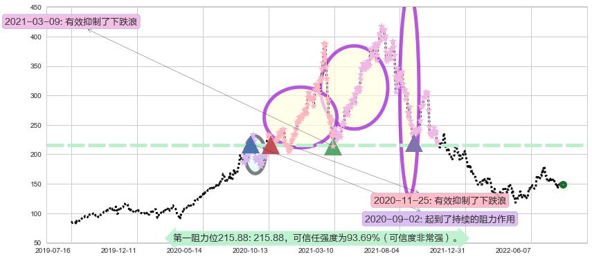 ♘ 阻力价格位215.88,可信任强度93.69%,距离最后交易2022-08-12形成的收盘价格148.87相差 +45.01%