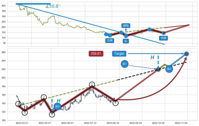 ➢ 【仅预测突破】最后价格:148.87与预测突破价格:219.76→【空间较大】后续最小【反转】第一目标价格→(2022-11-28: 256.61 )