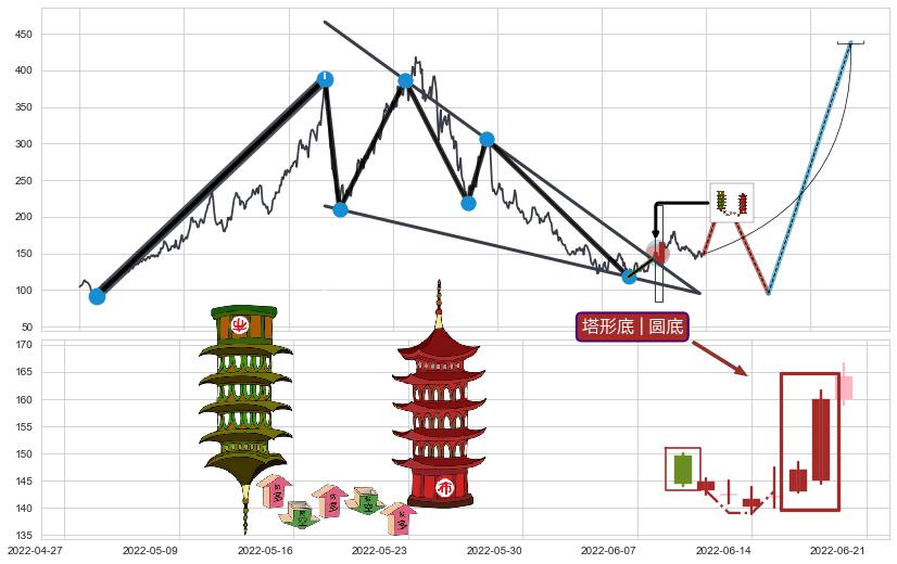 | 15 🅚:塔形底 | 圆底 ➕ 📡:谐波鲨鱼临近d点:猜想c下行到达d点后报复性拉升上涨(均值回复) ☞ 看多信号 ⇥ 【🅚线】交织【图形】⇥ 综合量化分数: 53 | > |