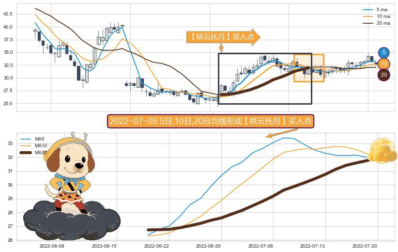 ⚀ 2022-06-20日-2022-07-20日显现 5日-10日-20日均线 【烘云托月】买入点 看多信号,后市看涨,买入