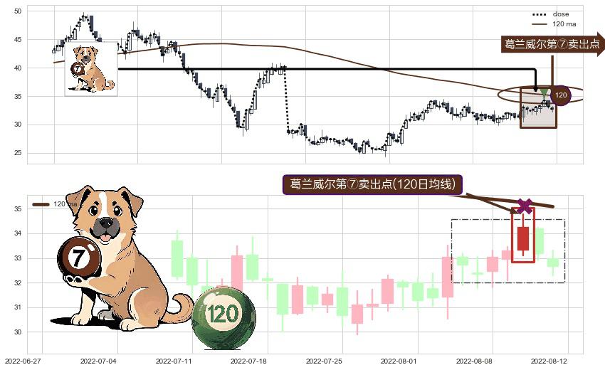 ⚀ 2022-08-10-日显现 葛兰威尔均线 120日均线 第⑦卖出点 下降趋势的中继信号,后市看跌,卖出信号