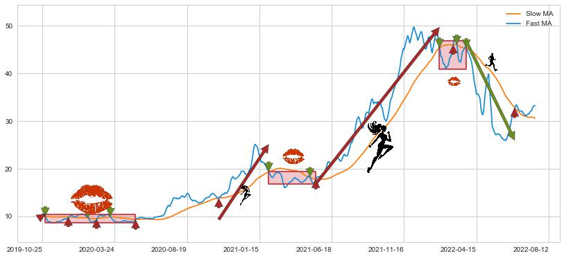 2022-03-24至2022-07-05 慢线与快线呈空头排列, 慢线与快线接触少,无缠绕