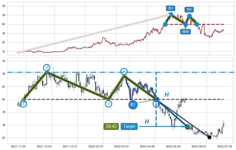 ➢ 【卖1】: 激进型 卖点→(2022-04-07: 40.01 )形成突破双重顶【反转】形态
