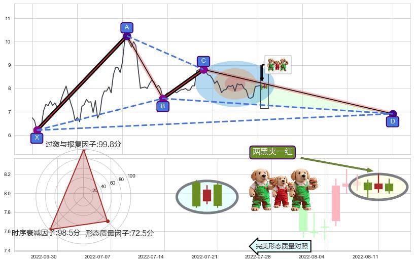 ♘ 支撑价格位6.32,可信任强度98.59%,距离最后交易2022-08-12形成的收盘价格8.02相差 -21.16%