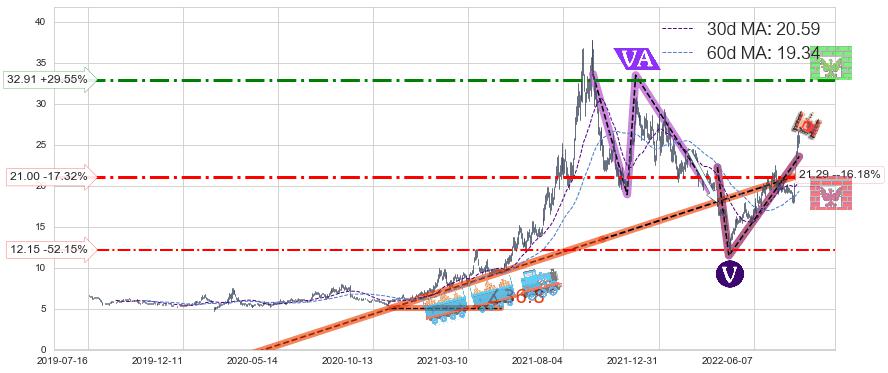 ➢ 2022-07-08到达第❶价格目标位置21.77