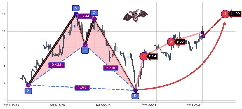 ➣ 已完成【蝙蝠】形态起点X: 2021-11-02, 终点D: 2022-04-26, 共118交易日
