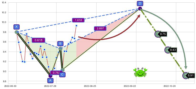 ➣ 未完成【螃蟹】形态起点X: 2022-06-30, 已到达C点: 2022-08-02, 预测最终D点: 2022-09-26, 共62交易日