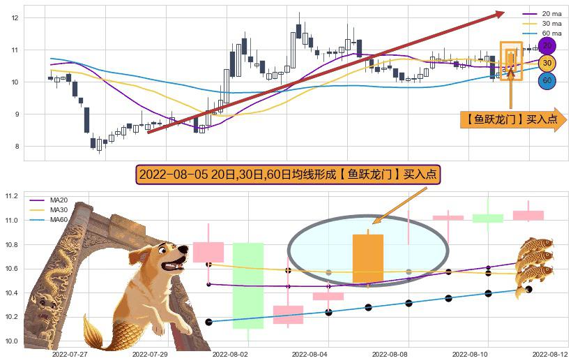 形态多维评估: ⚀ 2022-08-05日显现 20日-30日-60日均线 【鱼跃龙门】买入点 看多信号,后市看涨,买入