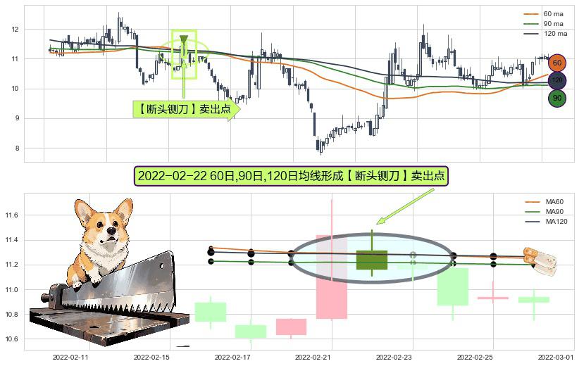 形态多维评估: ⚀ 2022-02-22日显现 60日-90日-120日均线 【断头铡刀】卖出点 看空信号,后市看跌,卖出