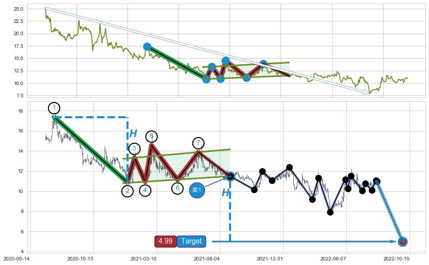 ➢ 【已达成】最小【整理】第一目标价格→(2022-04-26: 7.95 ), 后续继续【整理】下跌动力依然存在,下跌空间适中