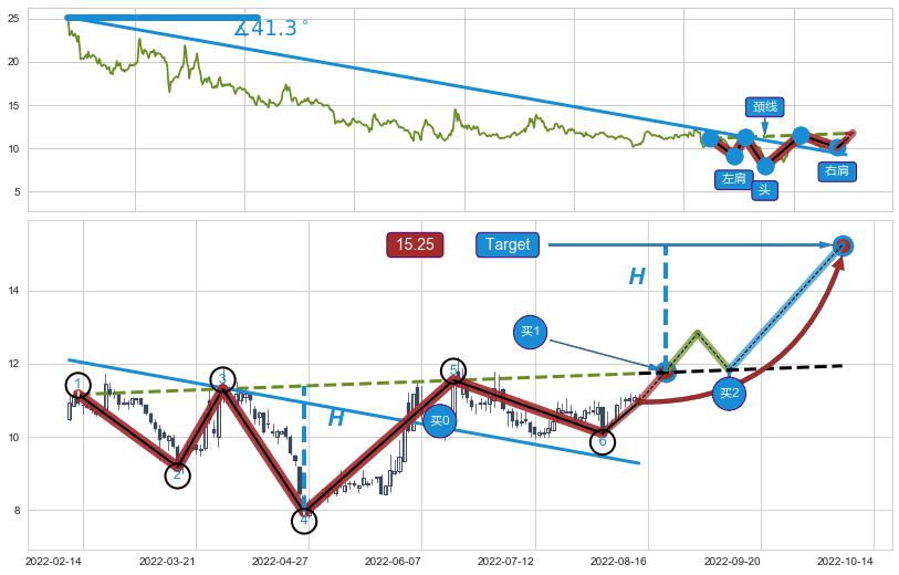 ➢ 【仅预测突破】最后价格:10.95与预测突破价格:11.80→【空间中等】后续最小【反转】第一目标价格→(2022-10-14: 15.25 )