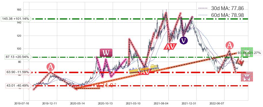♘ 阻力价格位87.13,可信任强度65.44%,距离最后交易2022-08-12形成的收盘价格72.28相差 +20.54%