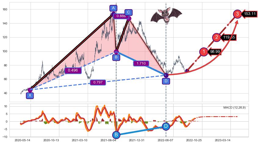 ➣ 已完成【蝙蝠】形态起点X: 2020-05-12, 终点D: 2022-04-26, 共477交易日