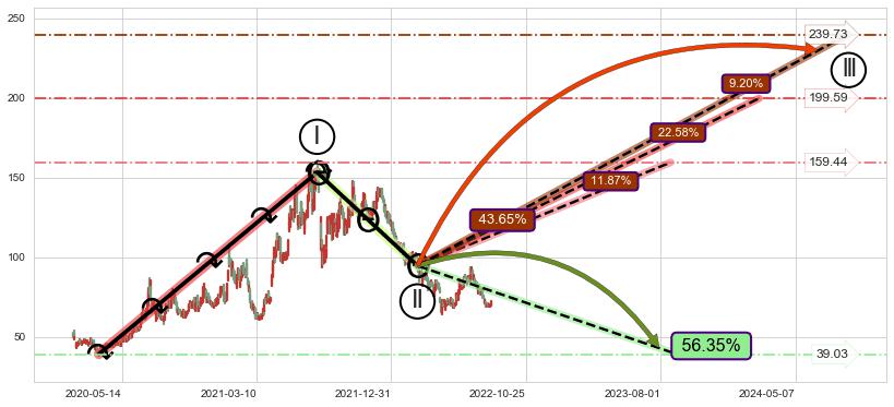 ➣ 大趋势循环浪继续向上概率43.65%
