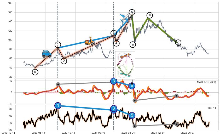 ➣ a,c调整浪RSI走势未出现明显背离