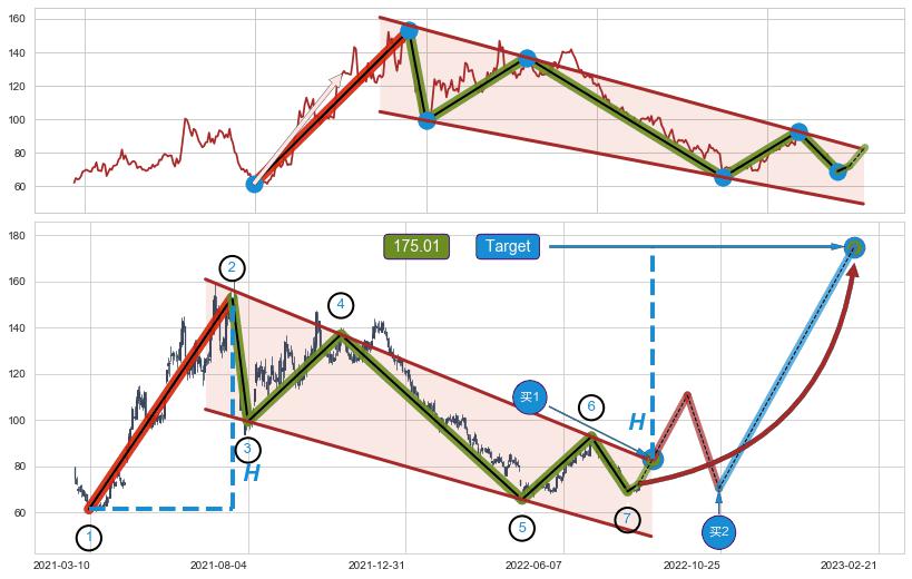 ➢ 【仅预测突破】最后价格:72.28与预测突破价格:83.23→【空间中等】后续最小【整理】第一目标价格→(2023-02-21: 175.01 )