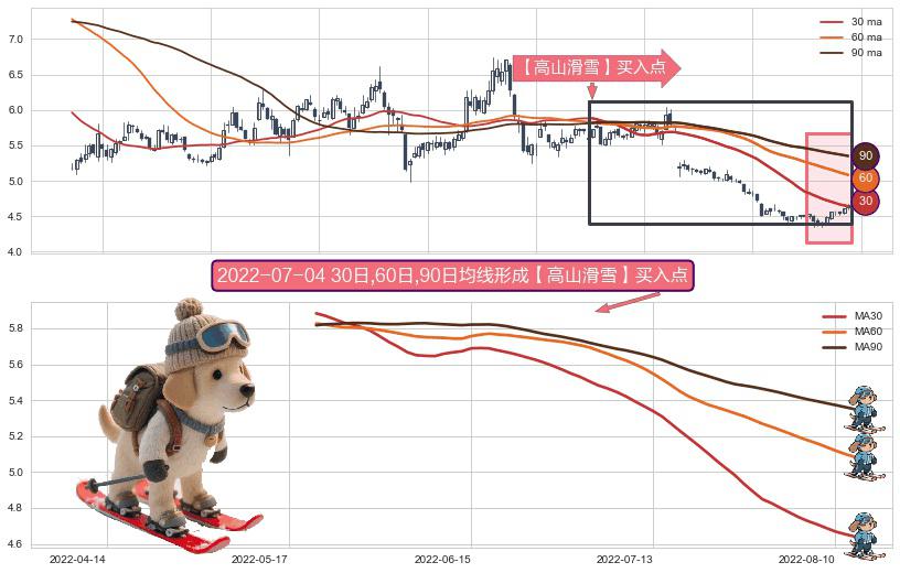 ⚀ 2022-05-20日-2022-08-12日显现 30日-60日-90日均线 【高山滑雪】买入点 看多信号,后市看涨,买入