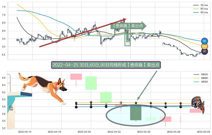 ⚀ 2022-04-25日显现 30日-60日-90日均线 【绝命跳】卖出点 看空信号,后市看跌,卖出