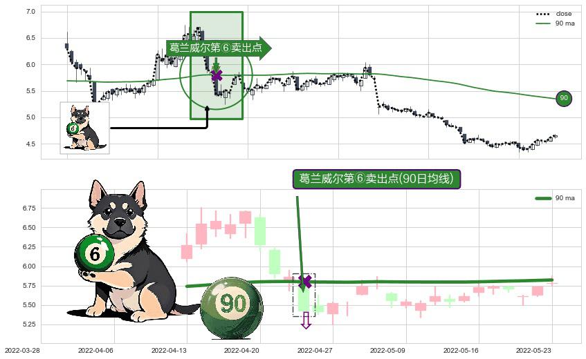 ⚀ 2022-04-25-日显现 葛兰威尔均线 90日均线 第⑥卖出点 走势反转见顶信号,后市看跌,卖出信号