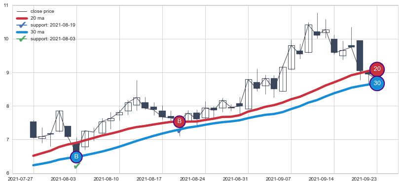 ⚃ 在破位点附近ma走势已有下垂迹象,稍后的走势中ma下降趋势明显,信号【可信度高】