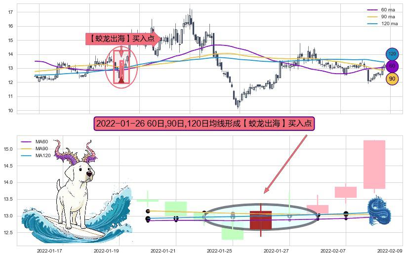形态多维评估: ⚀ 2022-01-26日显现 60日-90日-120日均线 【蛟龙出海】买入点 看多信号,后市看涨,买入
