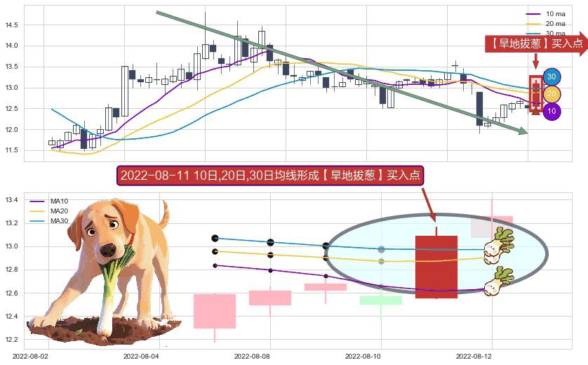 形态多维评估: ⚀ 2022-08-11日显现 10日-20日-30日均线 【旱地拔葱】买入点 看多信号,后市看涨,买入