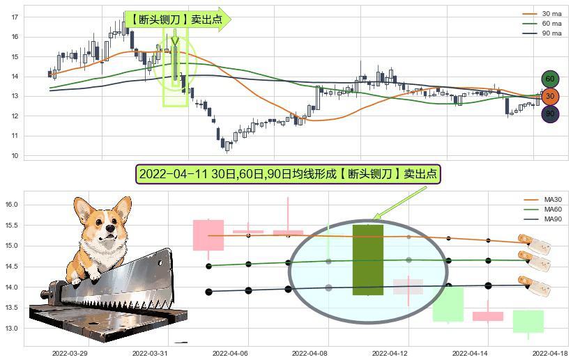 形态多维评估: ⚀ 2022-04-11日显现 30日-60日-90日均线 【断头铡刀】卖出点 看空信号,后市看跌,卖出