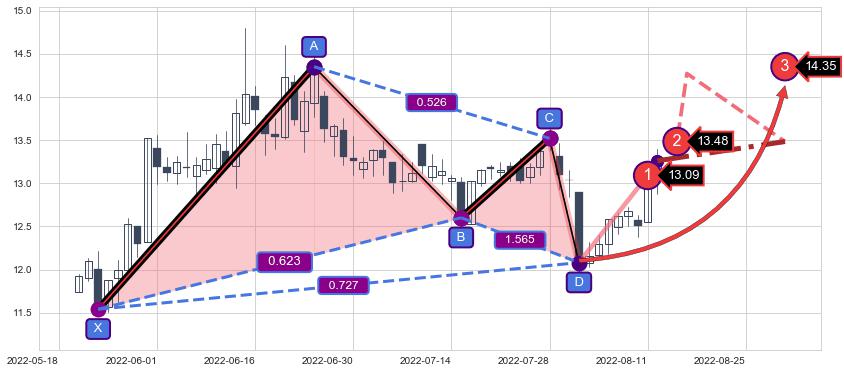➣ AI预测: 假定反转继续,第❷价格目标位置(2022-08-16, 13.48)