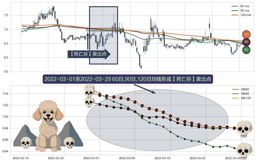⚀ 2022-03-02-日至2022-03-29-日显现 60日-90日-120日均线 【死亡谷】卖出点 看空信号,后市看跌,卖出