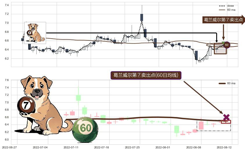 ⚀ 2022-08-12-日显现 葛兰威尔均线 60日均线 第⑦卖出点 下降趋势的中继信号,后市看跌,卖出信号