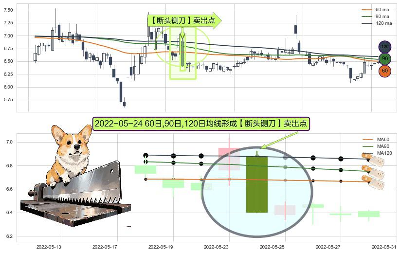 ⚀ 2022-05-24日显现 60日-90日-120日均线 【断头铡刀】卖出点 看空信号,后市看跌,卖出