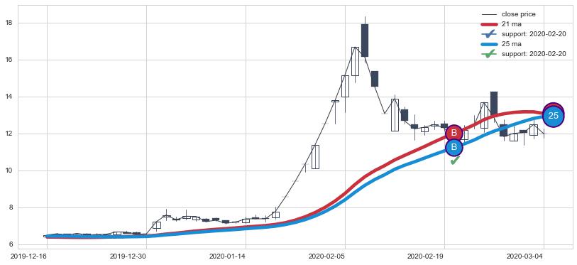 ➢ 最优均线组合共正确确认支撑阻力信号3处,正确确认率 100.00%