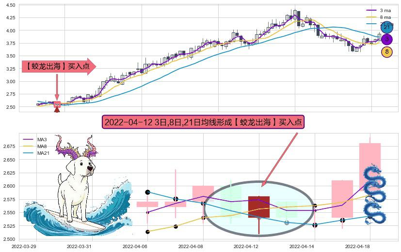 ⚀ 2022-04-12日显现 3日-8日-21日均线 【蛟龙出海】买入点 看多信号,后市看涨,买入