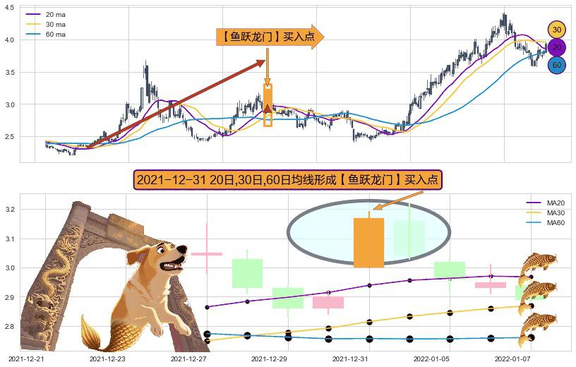 ⚀ 2021-12-31日显现 20日-30日-60日均线 【鱼跃龙门】买入点 看多信号,后市看涨,买入
