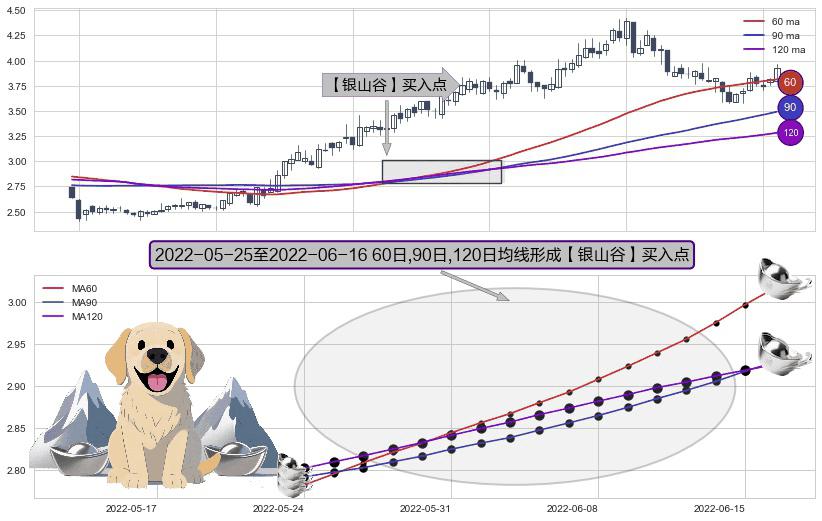 ⚀ 2022-05-26-日至2022-06-16-日显现 60日-90日-120日均线 【银山谷】买入点 看多信号,后市看涨,买入