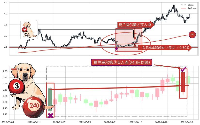 ⚀ 2022-04-22-日显现 葛兰威尔均线 240日均线 第③买入点 上升趋势的中继信号,后市看涨,买进信号