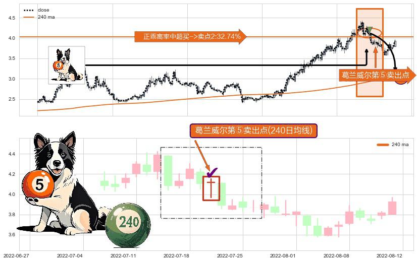⚀ 2022-07-20-日显现 葛兰威尔均线 240日均线 第⑤卖出点 上升趋势均值回复的短线回落信号,后市看跌,卖出信号