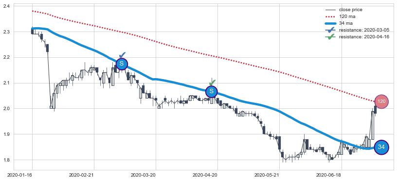 ⚀ 中期均线MA90上穿长期均线MA120形成的交叉是标准 黄金交叉