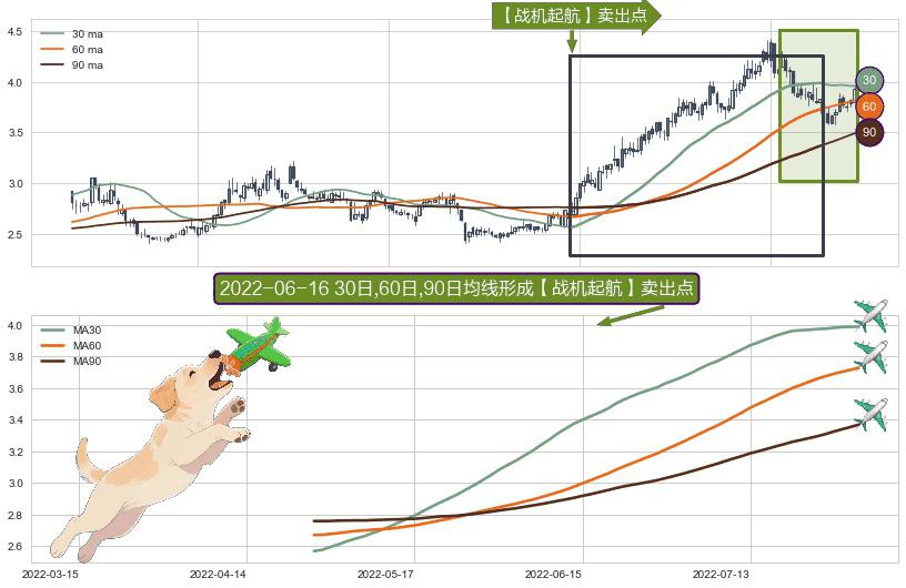 ⚀ 2022-04-26日-2022-08-01日显现 30日-60日-90日均线 【战机起航】卖出点 看空信号,后市看跌,卖出